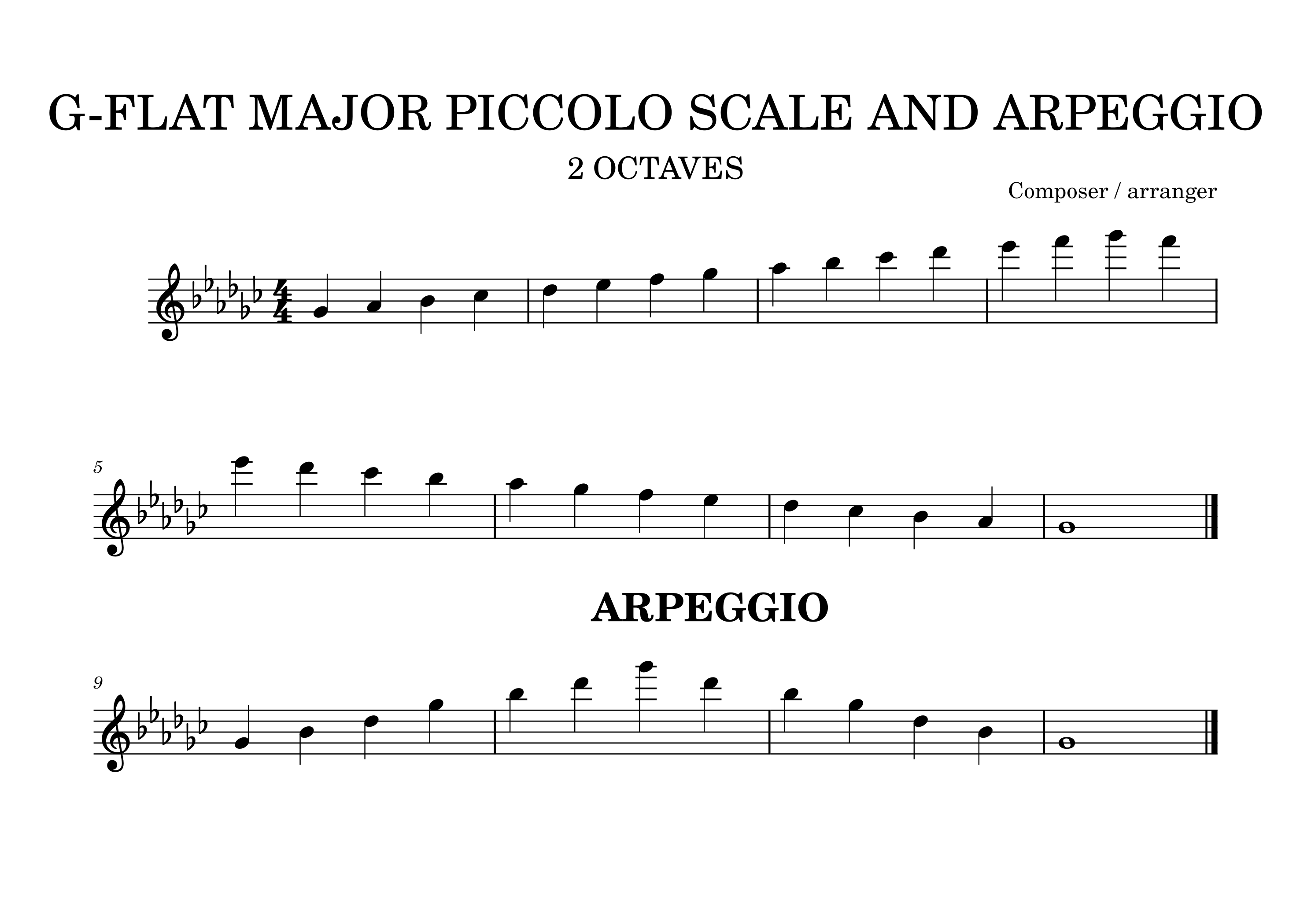 How to play G-flat (Gb) major scale on piccolo, notes, finger placement chart, and concert tips